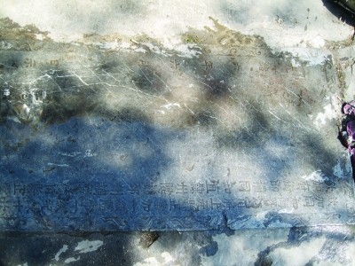 記者隨后又在華嚴(yán)寺9號租6門前發(fā)現(xiàn)一塊石碑,字跡清晰可辨,落款為清光緒六年六月。在華嚴(yán)寺9號租7門前記者還看到兩塊碑,遺憾的是已經(jīng)被抹上水泥,成了這處房子大門的門檻石。