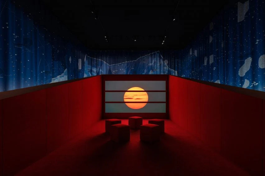 隔墻環(huán)繞著屏幕和觀看區(qū),旨在模仿沙丘,營造出一種與展覽其他部分隔絕的感覺。