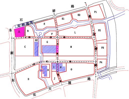 注:圖中紅色區(qū)域?yàn)锳地塊用地范圍