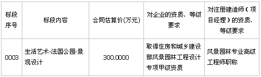 (2) 工程規(guī)模: 景觀設(shè)計面積15萬㎡左右。建筑面積: 平方米。工程性質(zhì):園林綠化工程。招標金額:300萬元