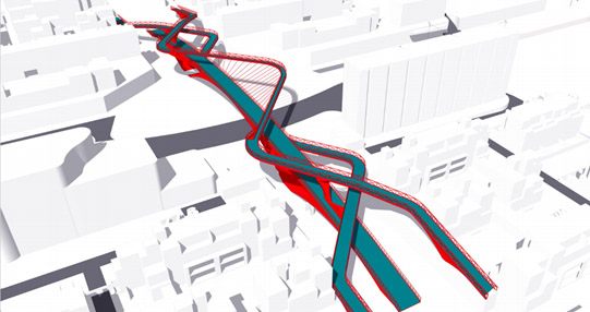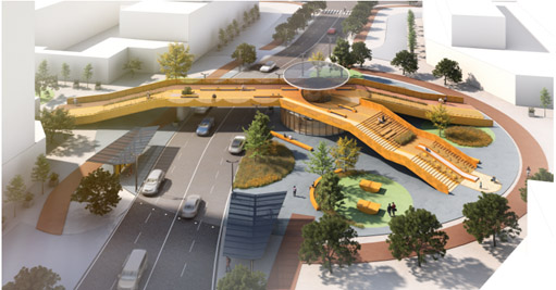 植被與人流分別跨越城市車流,以生態(tài)連接了被分割的社區(qū),具備移步換景的空間樂趣。外形美麗,此方案詮釋顏值即正義,橋的功能性是基礎,景觀標志性也很重要。設計感比較柔和,緩和了城市道路的剛直。