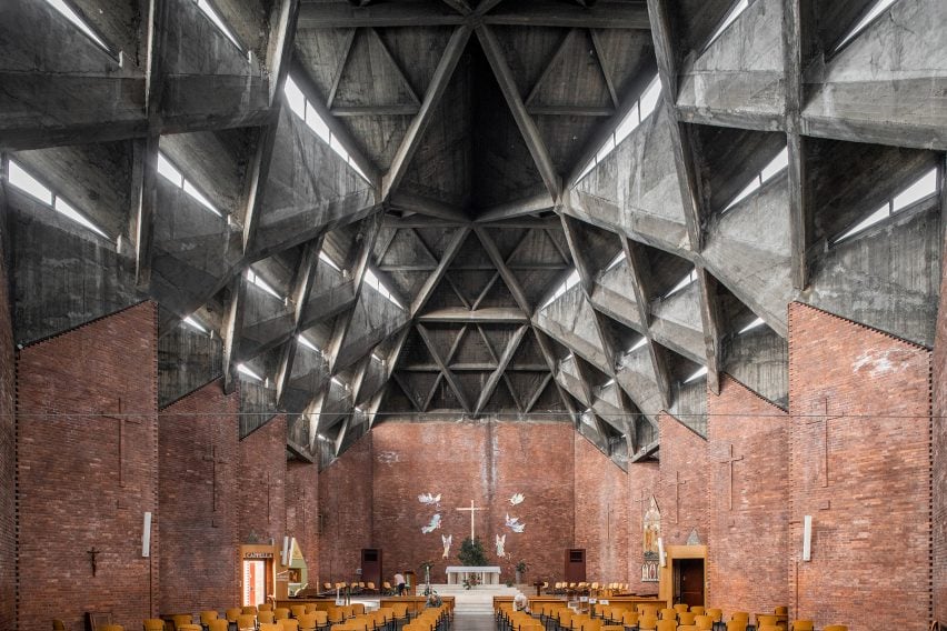 由相互連接的三角形天窗組成的混凝土天花板為這座世紀(jì)中葉的磚砌教堂增添了裝飾性。