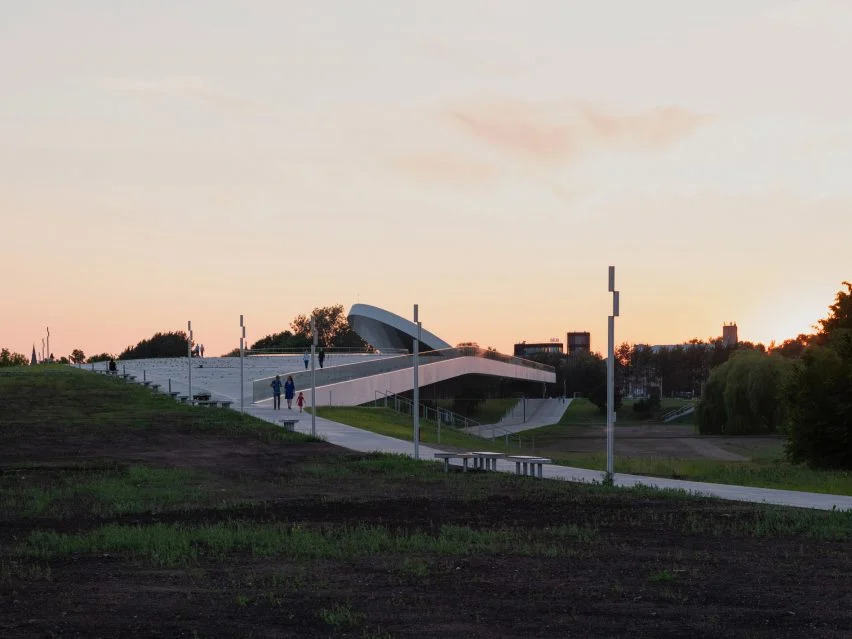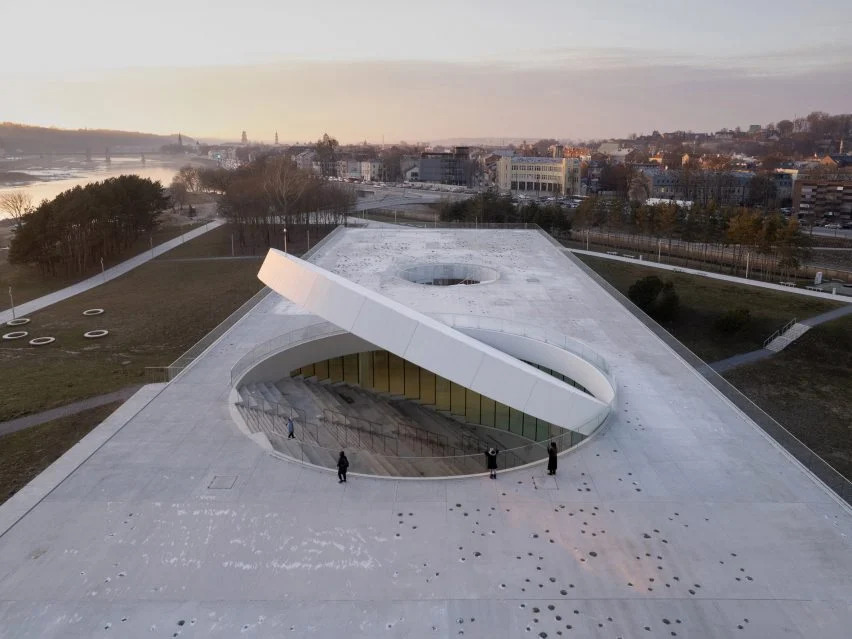 一個閃亮的鋁盤將這座由澳大利亞斯馬建筑工作室(SMAR Architecture Studio )設(shè)計的科學博物館的屋頂變成了立陶宛第二大城市的“新太陽”。