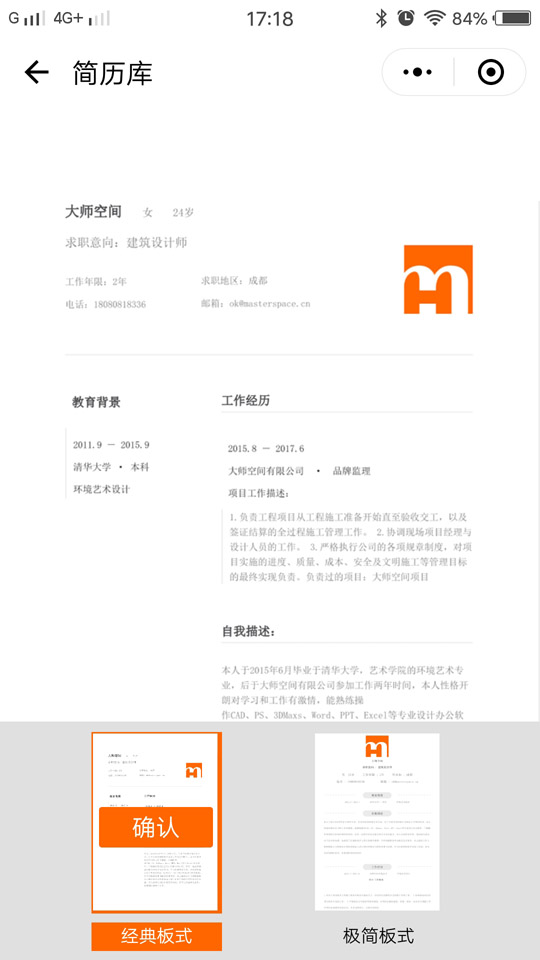 通過Master聯(lián)系中意的大師團(tuán)隊(duì),一鍵投遞你的個(gè)人履歷,在手機(jī)上就可以全部完成。