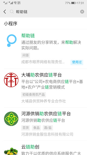 也可以從微信小程序里直接搜索“幫助鏈”。